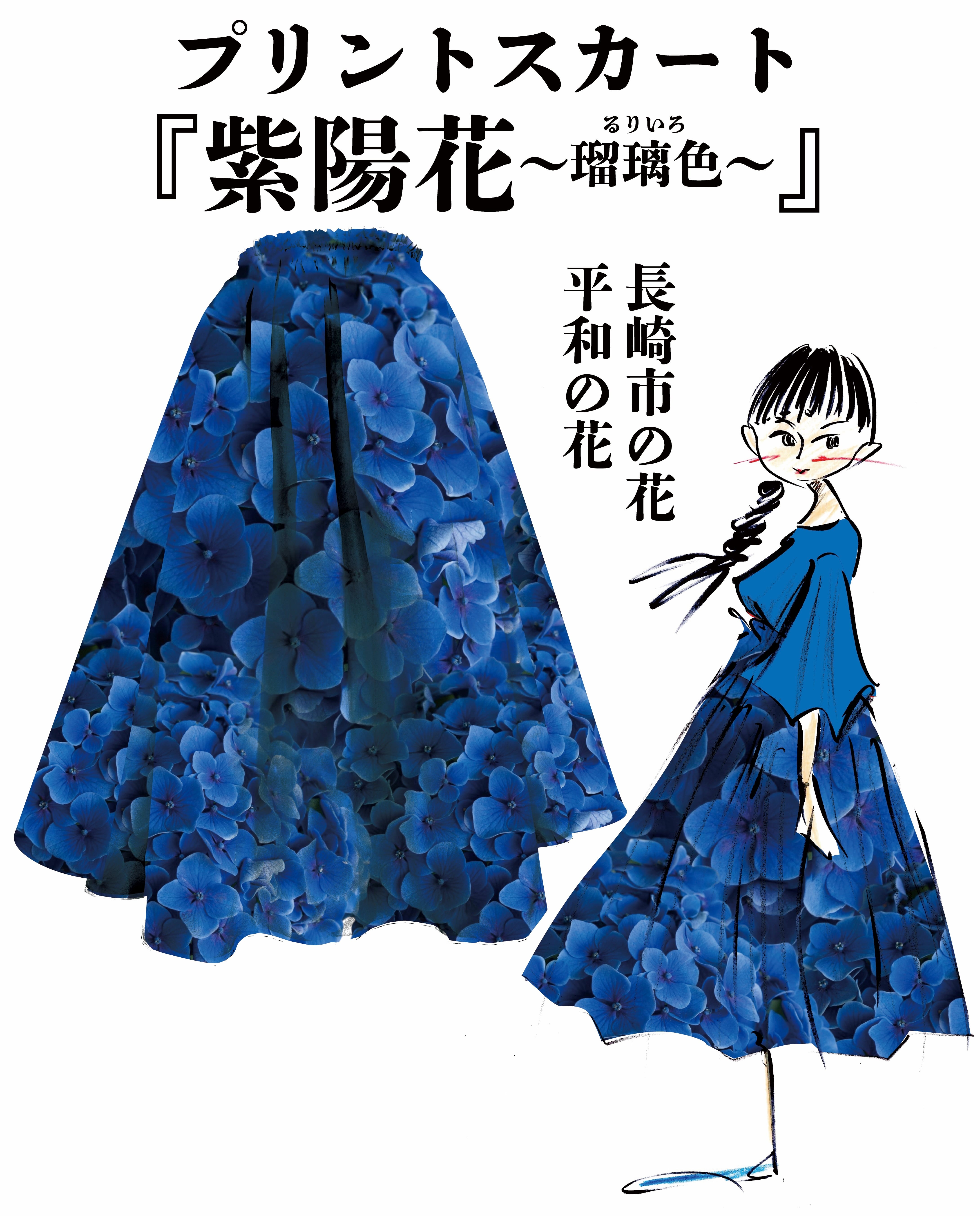 紫陽花〜瑠璃色〜 プリントスカート
