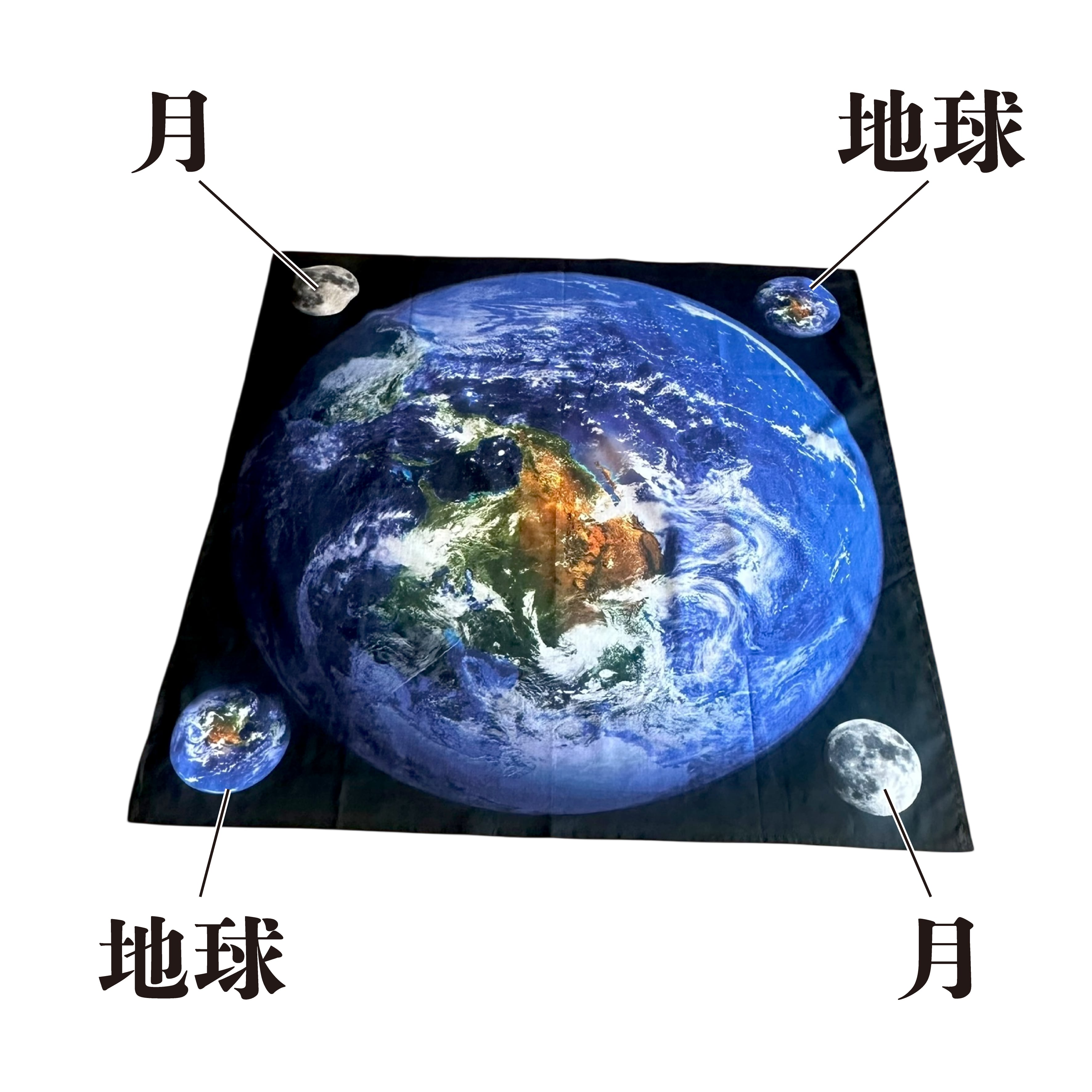 地球と月を壮大にプリントしたスカーフです