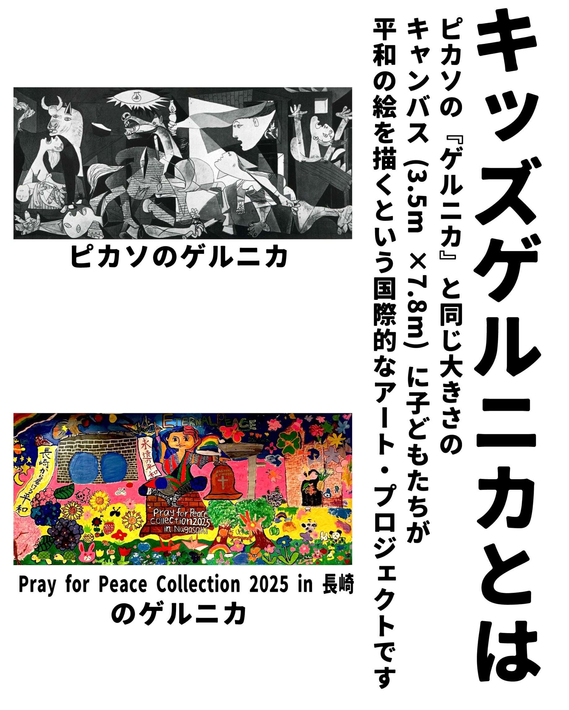 ◆キッズゲルニカはピカソの『ゲルニカ』と同じ大きさのキャンバス (3.5m ×7.8m) に子どもたちが平和の絵を描くという国際的なアート・プロジェクトです。