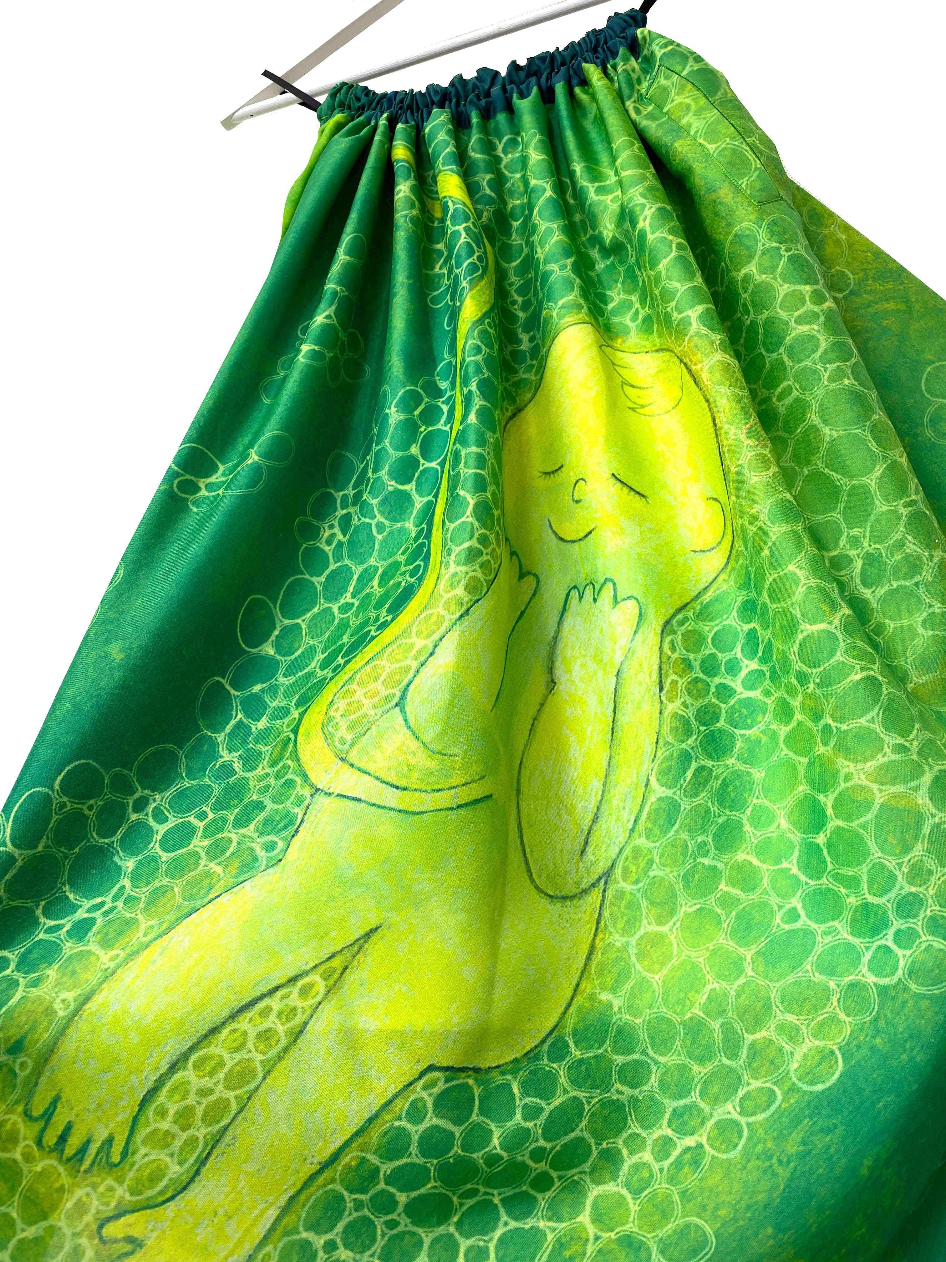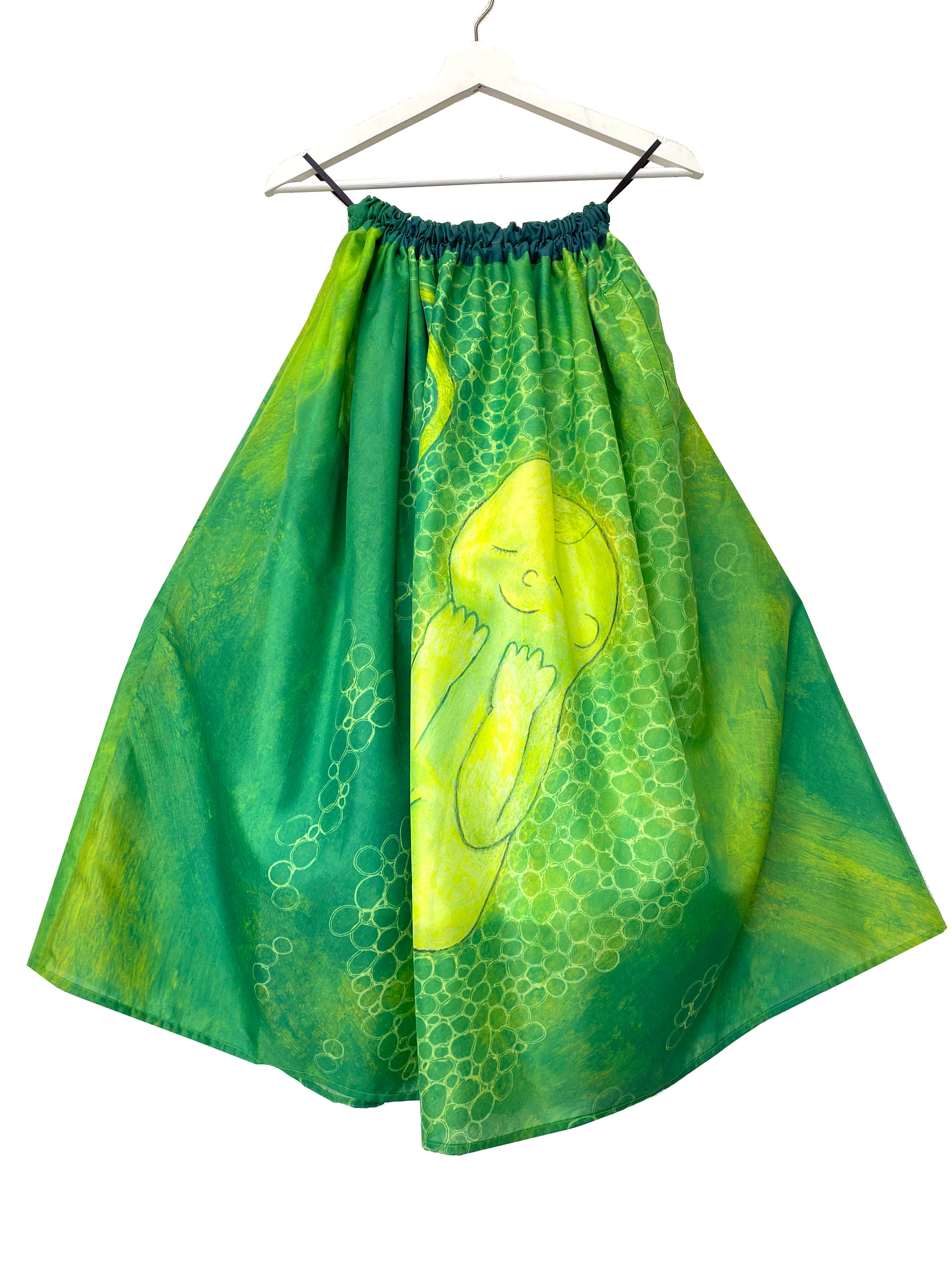 スカートを履くと、へその緒が繋がって見えるデザイン。