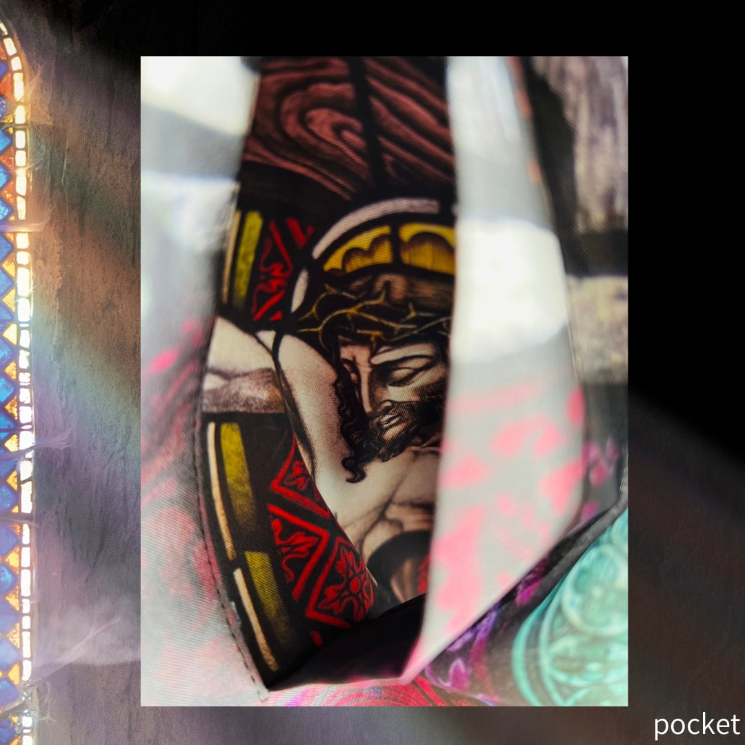 ポケットの中には聖母マリア様とイエスキリストがプリントされてます。