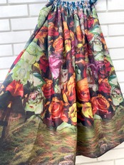 裾にプリントされた大地、土や石の存在はどこか郷愁の想いを感じさせてくれます。