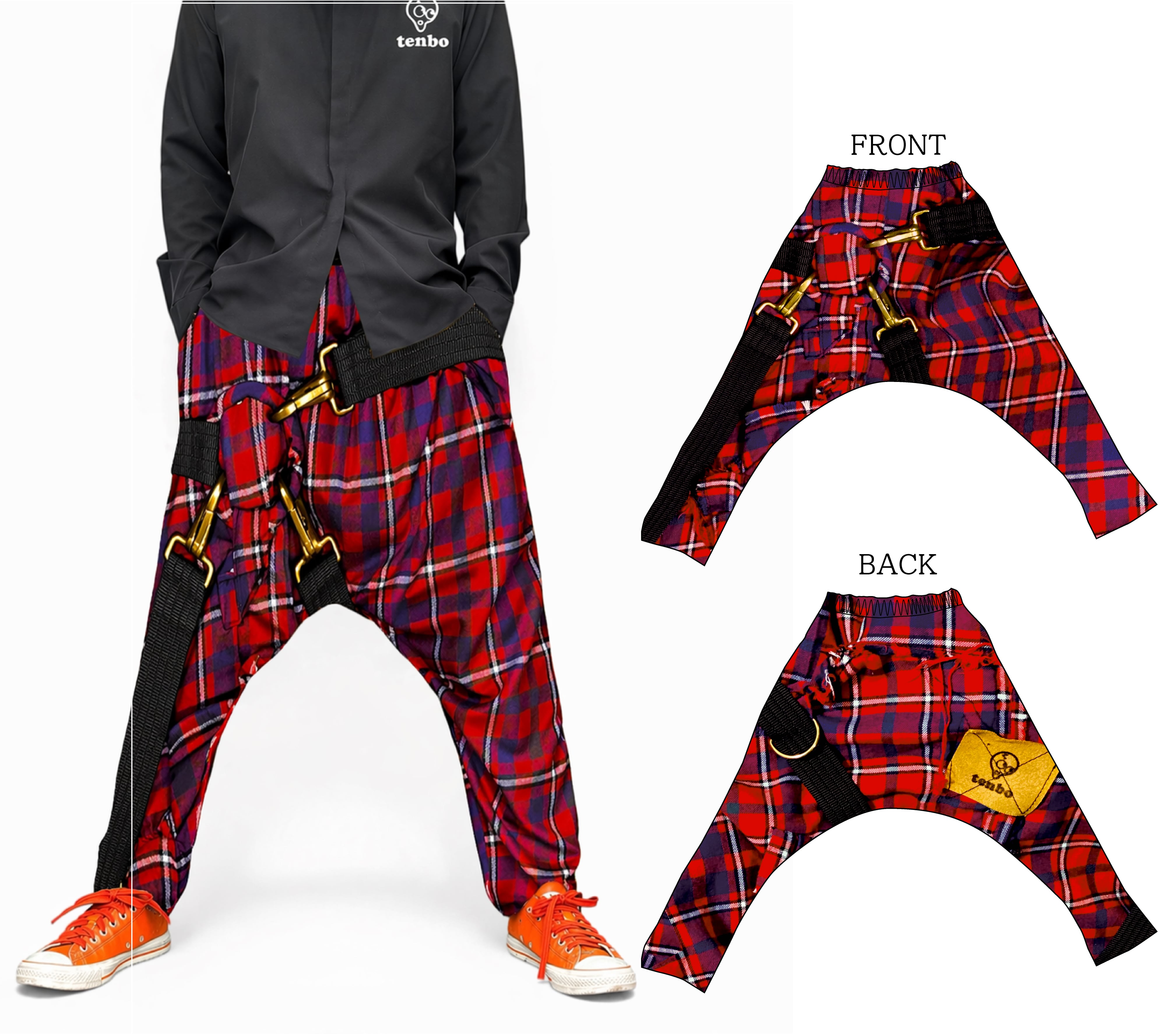 束縛されていながら自由を求める生き様。どんなにもがいてもふりほどけない自分自身の反骨精神を表現したパンク風タータンチェック。